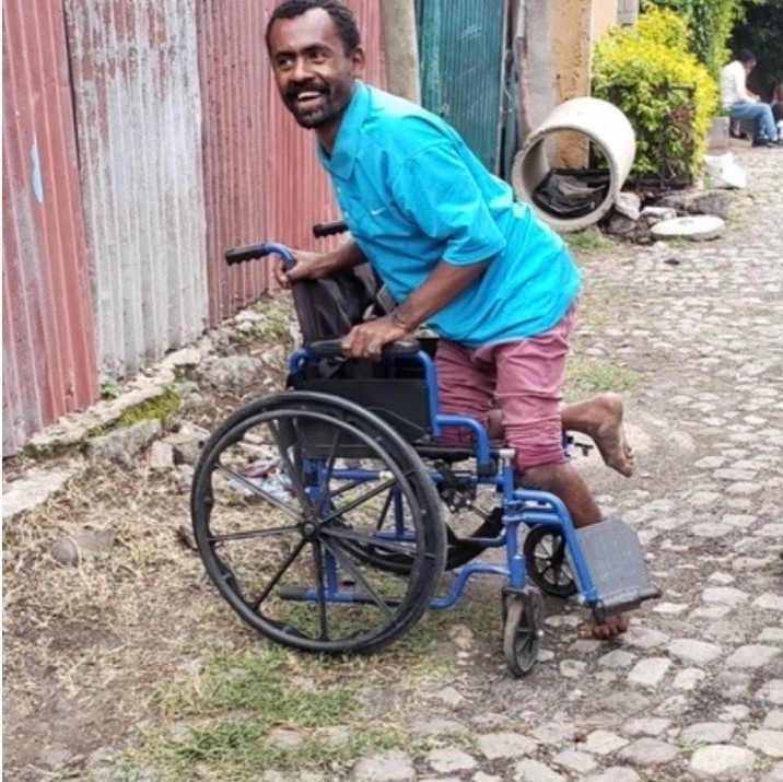 We decided the best way to help him and his family was to give Yohannes a wheelchair and a commode. Yohannes loves meeting new people and is always excited whenever we came over. His excitement doubled the day we gave him his equipment. He especially enjoys using the wheelchair and the commode ameliorated the bathroom situation.